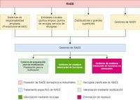 Una vez que los residuos están en posesión de los gestores de RAEE estos se evaluan para destinarlos a la reutilización o para extraer distintas fracciones como los componentes peligrosos u otras fracciones para su valorización o eliminación, lo que se denomina tratamiento específico de RAEE. Las fracciones valorizables son transferidas a otros gestores de residuos especializados para su valorización como por ejemplo mediante el reciclaje y así obtener nuevas materias primas.